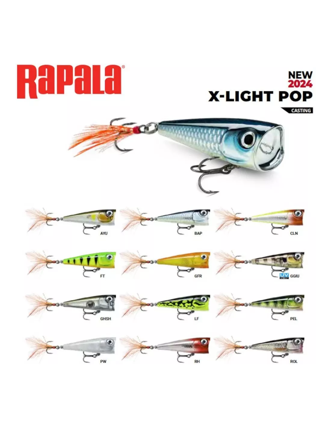 Die modernen Farben und der Feder- und Tinsel-Teaser am hinteren Haken machen den X-Light Pop zu einer unwiderstehlichen Beute für viele Süßwasserraubfische – besonders, wenn das Angeln schwierig ist.