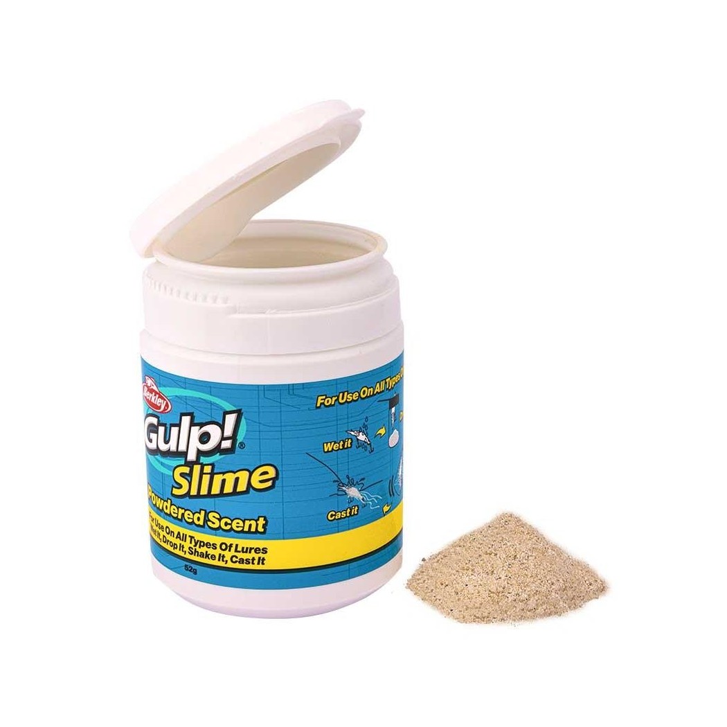 Berkley a réussi à rassembler tous les composants olfactifs et gustatifs actifs qui rendent Gulp! si efficace dans un nouvel attractant en poudre sèche qui peut être appliqué à n’importe quel leurre. Le processus d’application de l’odeur est simple : mouillez votre leurre et déposez-le dans le récipient de poudre sèche Gulp! Slime, puis fermez doucement le couvercle, secouez et lancez. C’est aussi simple que cela. Une fois dans l’eau, la poudre attachée à votre leurre se transforme rapidement en une substance visqueuse transparente qui disperse la formule olfactive Gulp! dans une traînée olfactive qui attire les poissons comme aucune autre. Votre poisson. Notre science. C’est ce que les gens en blouse blanche font de mieux chez Berkley.