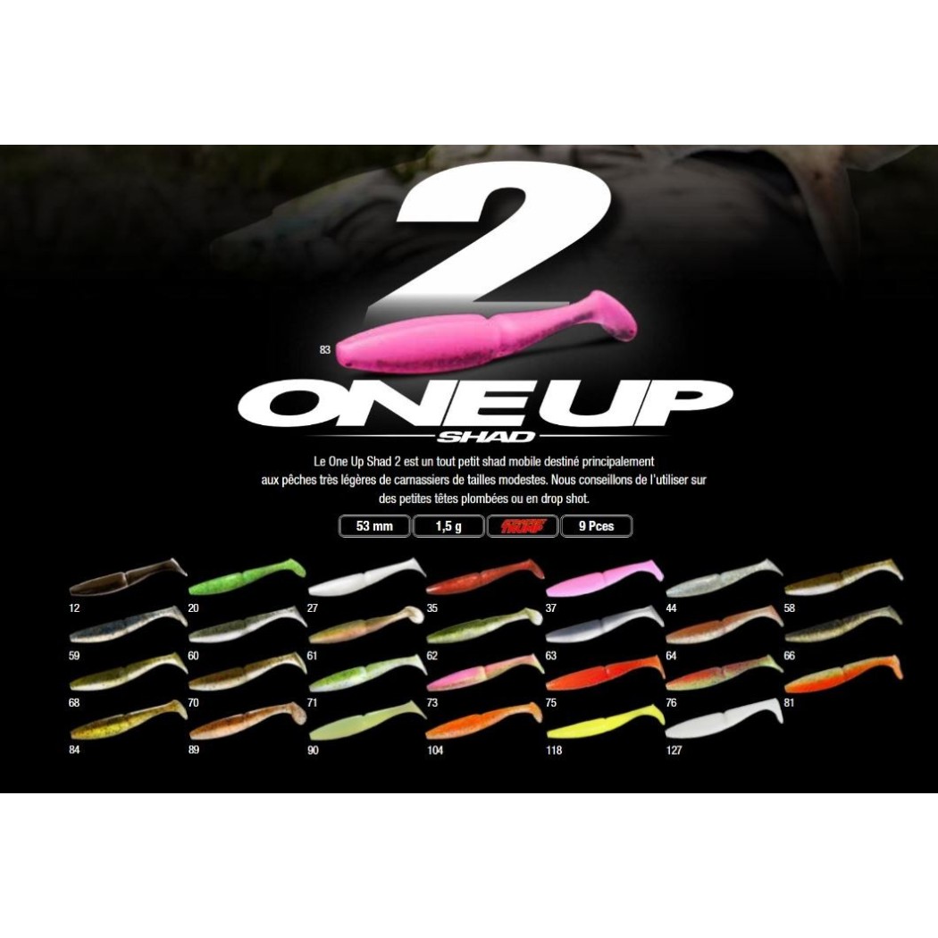 Le One Up Shad de Sawamura tient le haut de l’affiche sur le marché japonais depuis plusieurs années. Ce leurre est tout aussi capable de prendre du sandre, du brochet , de la perche , du black bass ou du bar. Les poissons l’engament comme un appât naturel. Son odeur spéciale (trump) a la particularité de rendre les poissons complètement fous. Les enzymes utilisées sont les mêmes que celles du XLAYER, ce qui en fait vraiment un leurre incontournable. Il s’utilise aussi bien avec un hameçon texan qu’avec une tête plombée.