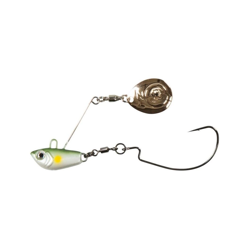 L’EFFZETT® Spin Jig est vraiment unique. À l’arrière du corps lesté se trouve un court morceau de fil en acier équipé d’une petite palette tournante. À la queue du corps lesté se situe un hameçon texan « Wide Gape » fixé à l’aide d’un anneau brisé et d’un émerillon baril. Cet hameçon à large ouverture peut recevoir n’importe quel leurre souple fin pour obtenir une présentation anti-accroche. Il peut également être remplacé par tout autre type d’hameçon. Combinaison mortelle de la rotation de la palette lors de la descente ou de la traction et du mouvement du leurre souple. (Vendu sans le leurre souple)