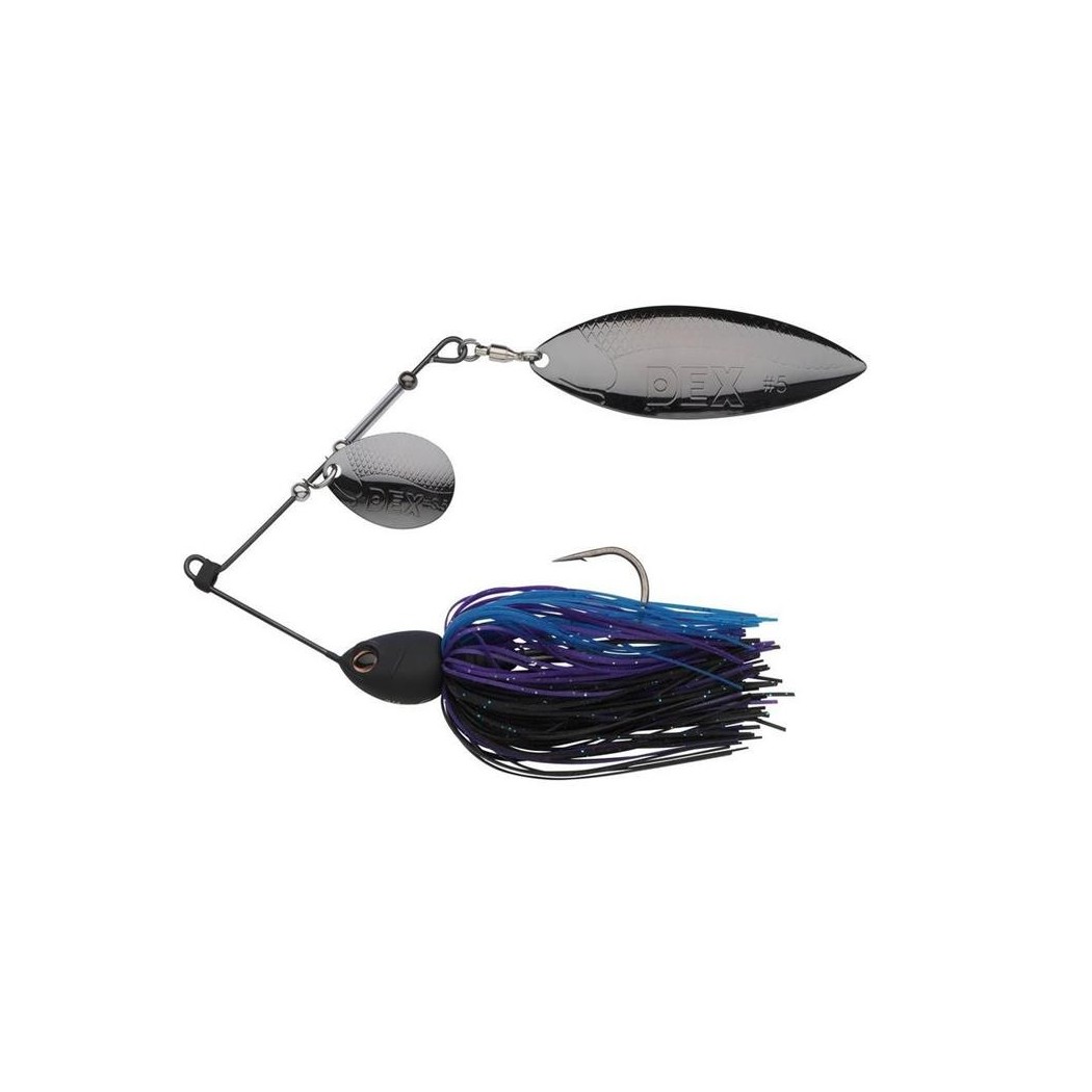 Le DEX Spinnerbait est un spinnerbait de type finesse premium fabriqué avec les matériaux les plus haut de gamme disponibles. Les lames Colorado et Willow sont montées sur un cadre en titane durable. Grâce à sa tête en tungstène de haute densité, le spinnerbait a un centre de gravité extrêmement bas qui rend le leurre très stable dans l’eau. Le spinnerbait DEX est équipé d’une jupe souple attachée à la main et d’un hameçon ultra-piquant qui est affûté chimiquement.