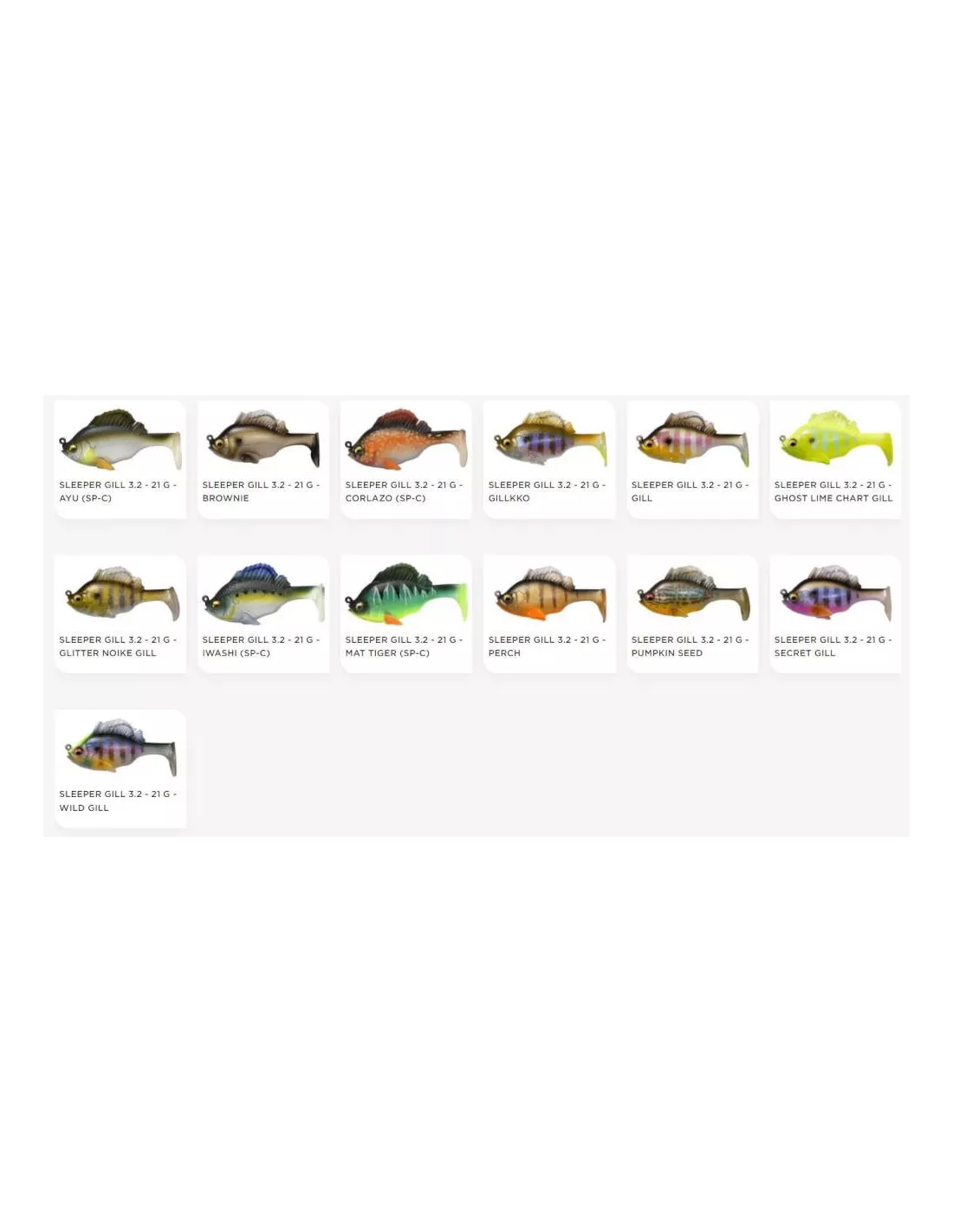 Il Sleeper Gill di Megabass è la perfetta imitazione di una piccola persico sole o di una piccola donzella. È dotato di una zavorra interna a livello della testa che gli permette una discesa lenta nello strato d'acqua azionando rapidamente il suo imponente paddle che si mette in movimento al minimo stimolo, anche a velocità molto basse.